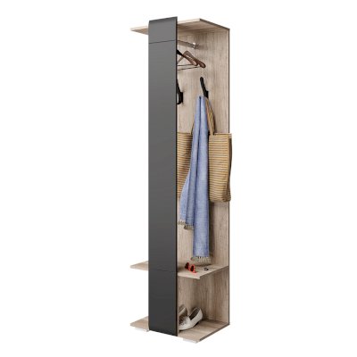 Напольная вешалка Наоми — идеальное решение для небольшой прихожей. Функциональная модель оснащена всем необходимым для удобного хранения предметов гардероба, обуви и сопутствующих аксессуаров. Обратите внимание! Вешалку необходимо крепить к стене при помощи угловых навесов. Фурнитура входит в комплект.